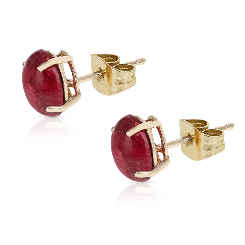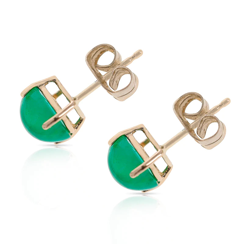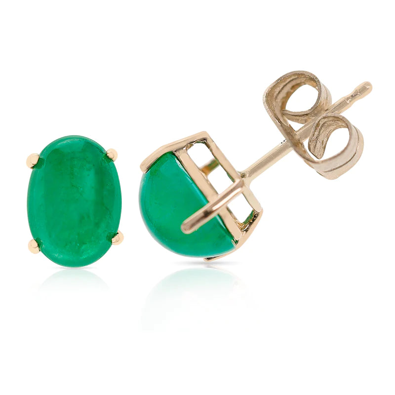 Blue Sapphire Oval Cabochon Stud Earrings Made in 14 Karat White Gold