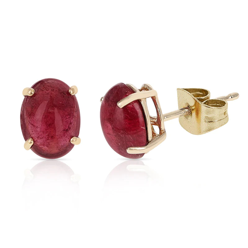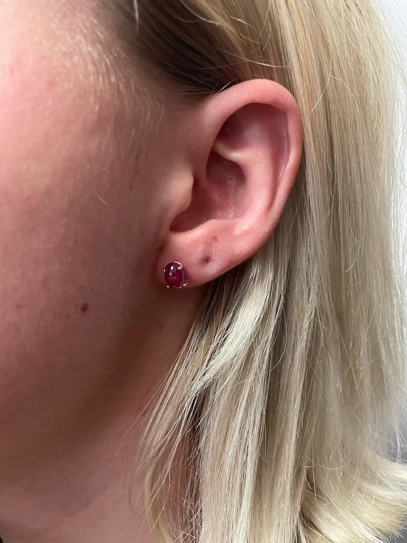 A pair of 9 x 7, 8 x 6, 7 x 5, and 6 x 4 MM Blue Sapphire Oval Cabochon Stud Earrings made in 14 Karat White Gold.