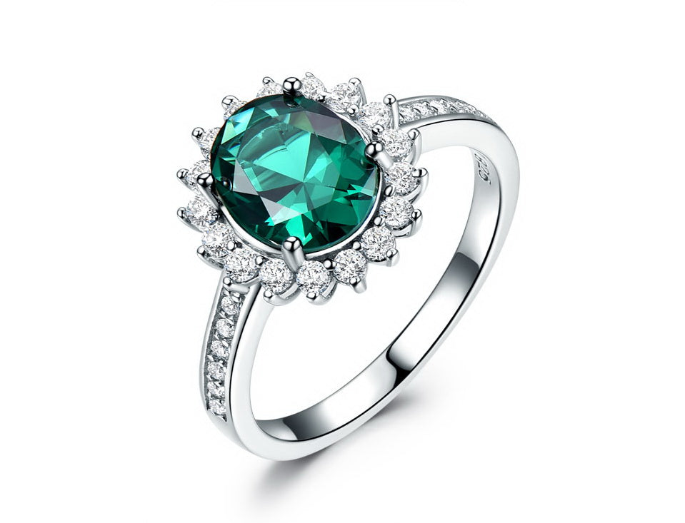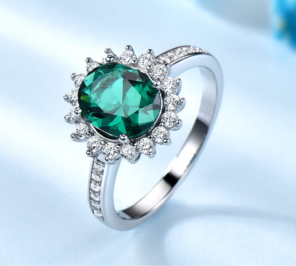 Emerald Green Oval 7 x 9 Cubic Zirconia Sterling Silver Ring