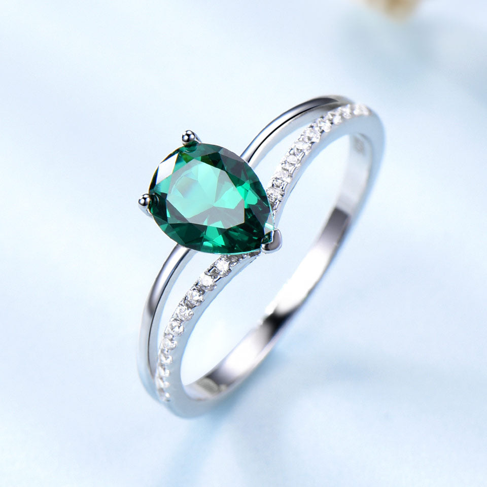 Emerald Green Pear Shape 6 x 8 Cubic Zirconia Sterling Silver Ring